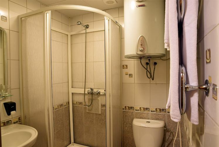 В номерах: широкие кровати, прикроватные тумбочки, стол, стулья, диван, кресло, журнальный столик с чайником , шкаф, телевизор, санузел с душем, Wi-FI.
